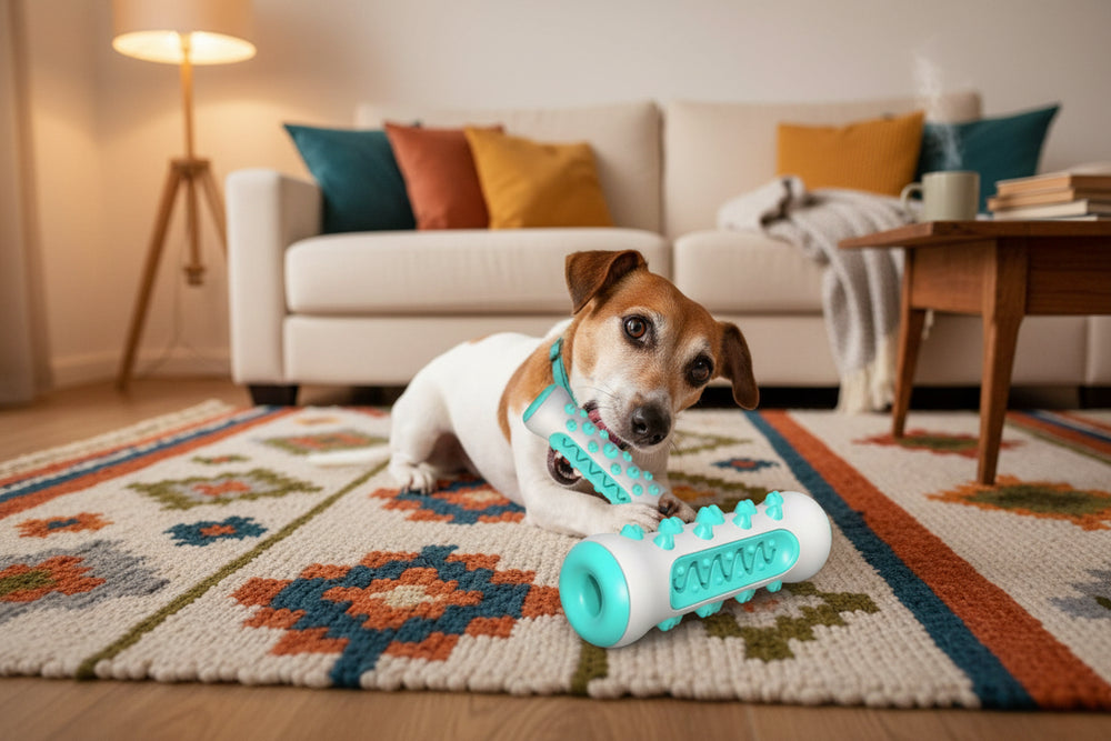 Hundar kämpar ofta med tandproblem, vilket kan påverka deras välbefinnande. Denna lösning erbjuder både rolig lek och effektiv tandvård i ett enkelt verktyg.